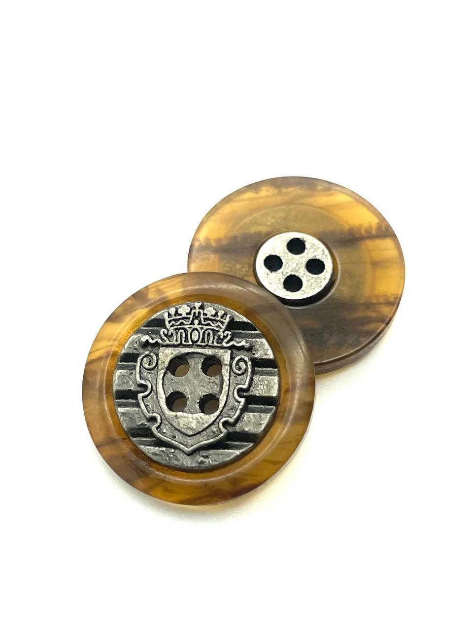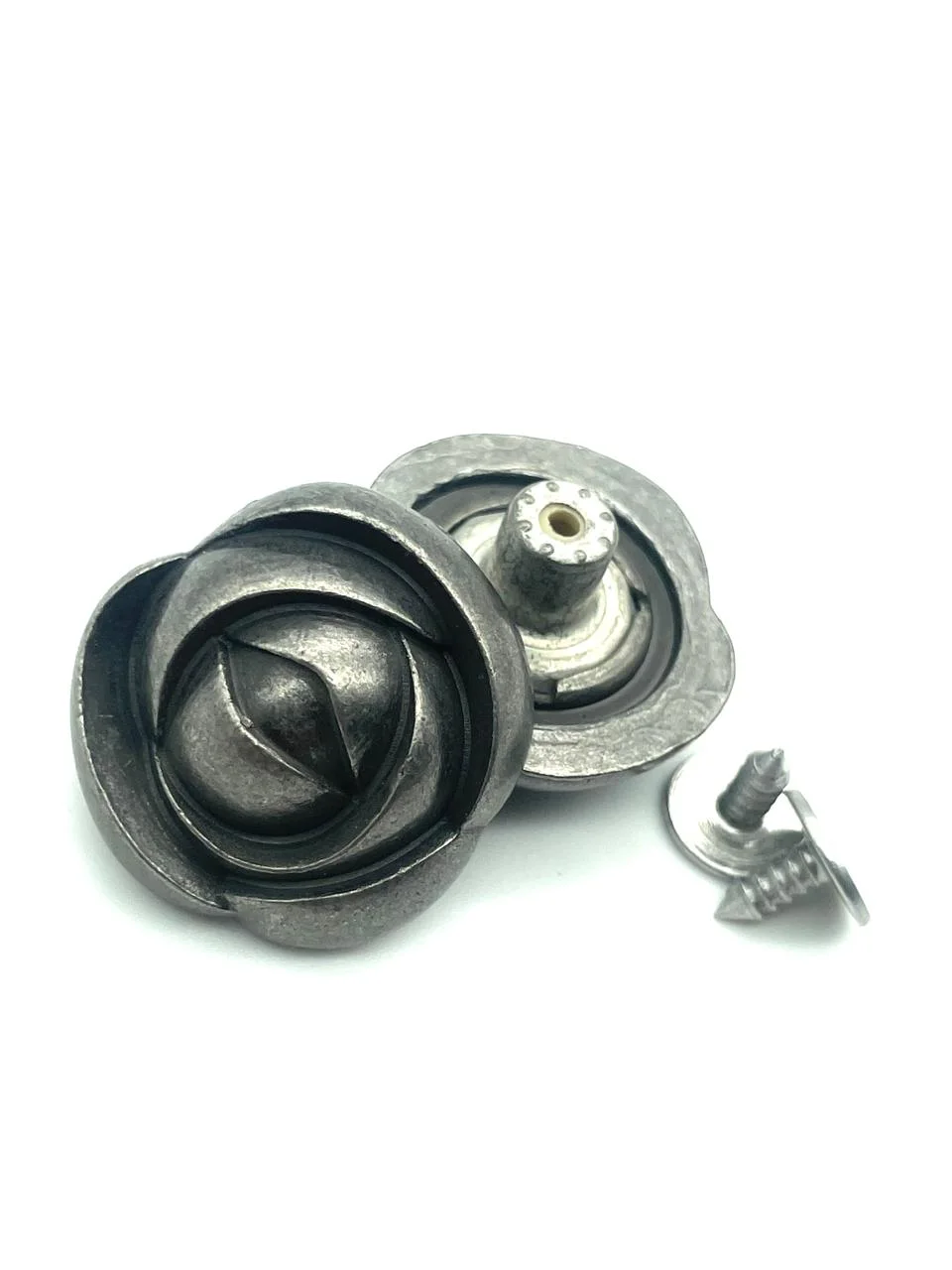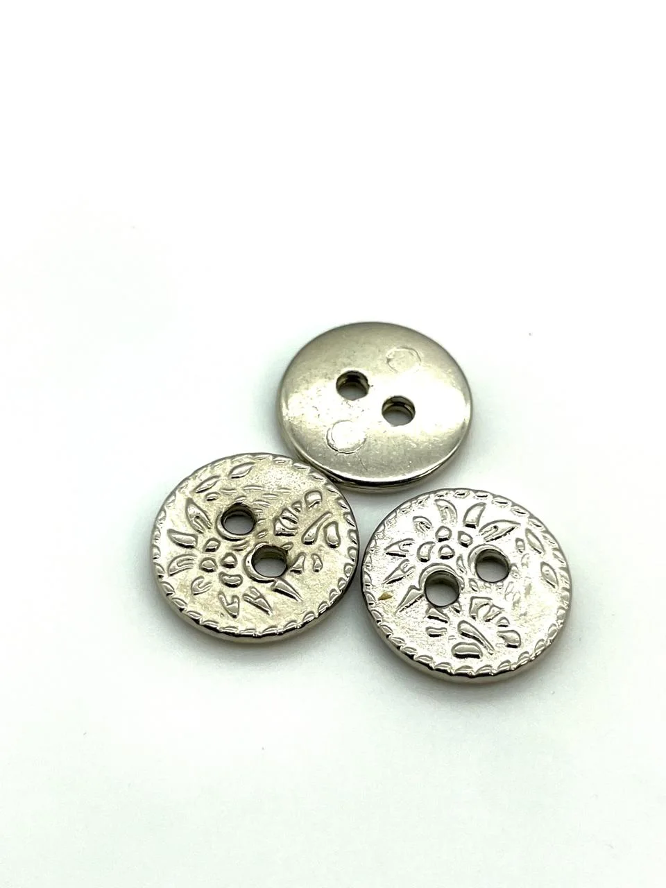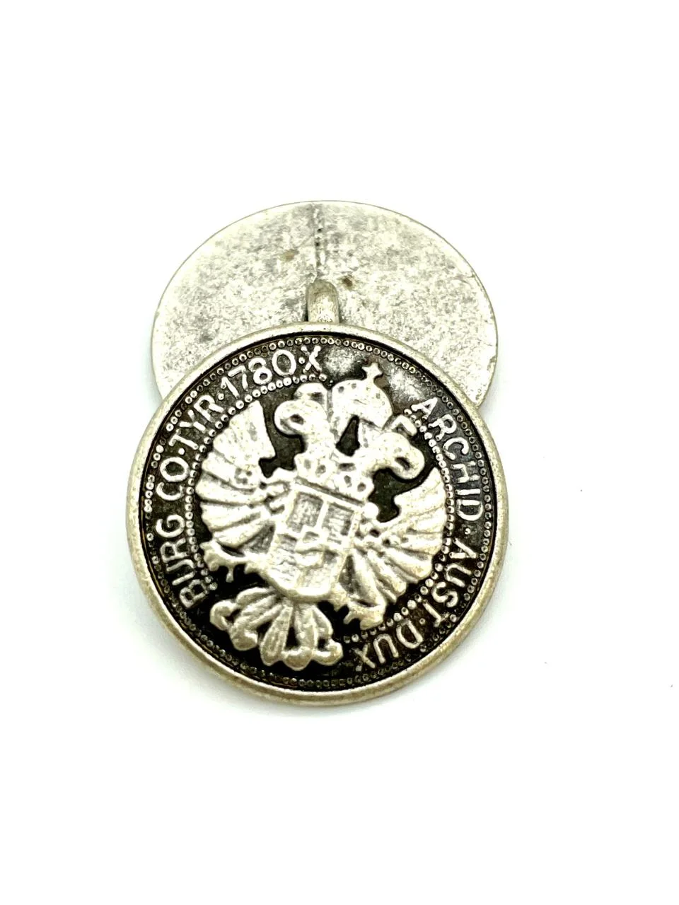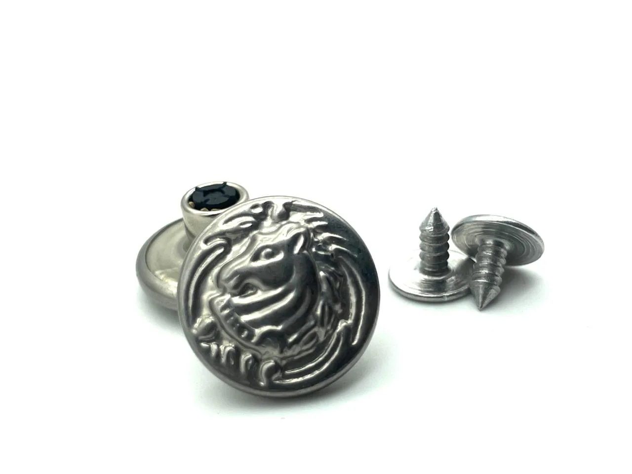 زر معدنية فضية عتيقة مع شكل رأس أسد