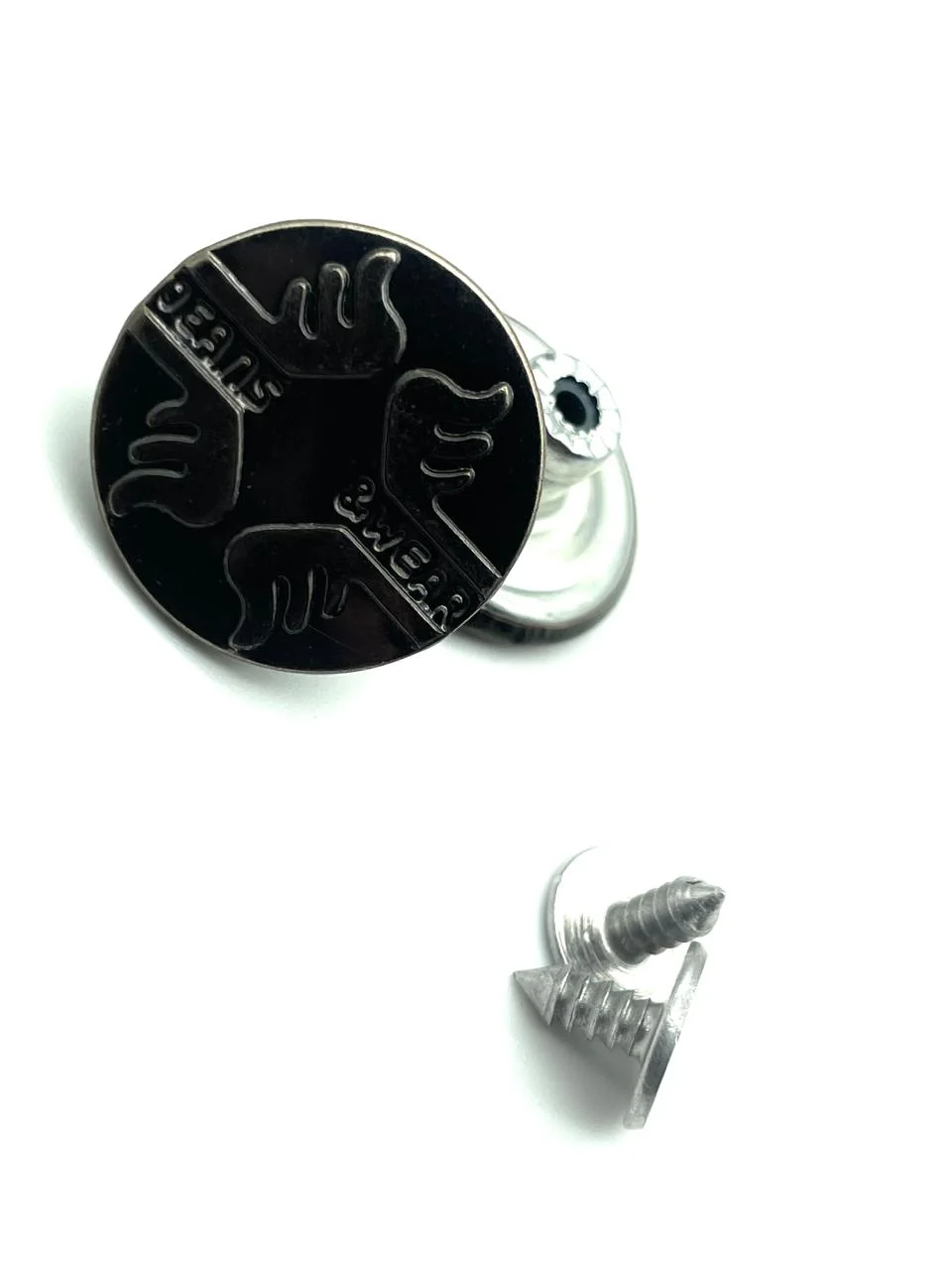 زر جينز معدني محفور عليه شعار "DEANS WEAR"