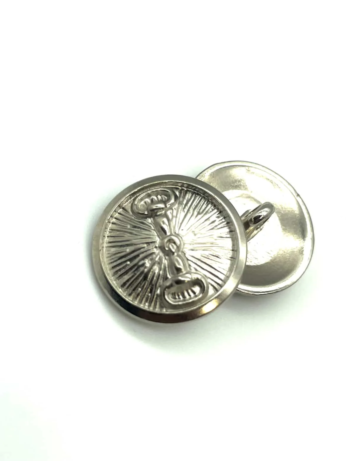 زر معدني فضي مزخرف